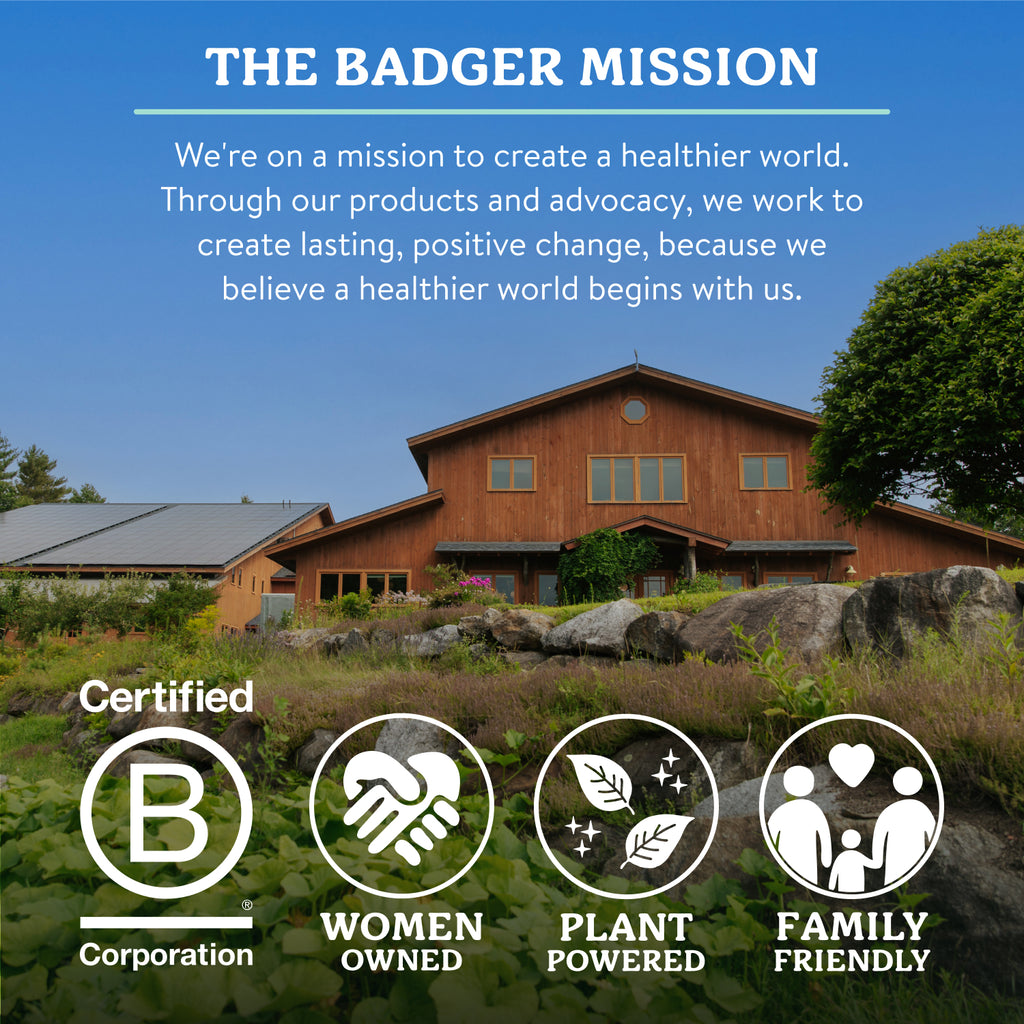 We hold every product to the highest standard of quality and efficacy. If you’re ever dissatisfied with a Badger product purchased from our website, you can always return it to us for replacement or a refund. We offer free shipping over $35 and a free gift with every order.