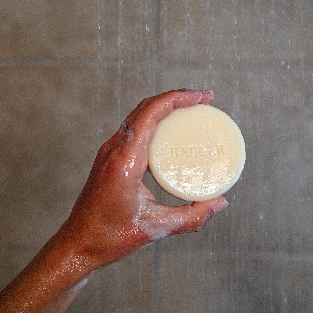 Over time, hard water (and even soft water) can make it more difficult to rinse all of the shampoo from your hair, causing buildup that leaves a waxy feel. You may also experience more tangles or frizz (especially true for long hair) due to the high pH level of natural soaps. An apple cider vinegar (ACV) rinse can help to remove mineral deposits, soften the hair shaft, and condition without causing buildup. It can be especially helpful for those new to shampoo bars. You can easily make a vinegar rinse at home by mixing 1 to 4 tablespoons of ACV with 8 ounces of water. Experiment to find a dilution that works best for your hair type.